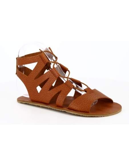 Fabricada artesanalmente en España, en piel natural color cuero, esta sandalia barefoot combina elegancia y confort. Su suela plana, flexible y sin drop, típica del calzado respetuoso, favorece una pisada más natural, ligera y alineada con tu cuerpo.