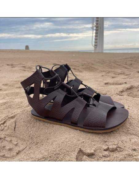 Fabricada artesanalmente en España, en piel natural color marron, esta sandalia barefoot combina elegancia y confort. Su suela plana, flexible y sin drop, típica del calzado respetuoso, favorece una pisada más natural, ligera y alineada con tu cuerpo.